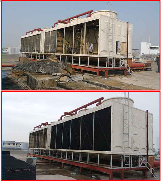 鴻翔花園位于深圳老城區(qū)之一的羅湖蔡屋圍區(qū)松園路。由于冷卻塔使用壽命長,冷卻塔填料老化,需要更換冷卻塔填料。接下來,根據(jù)鴻詳花園圓形冷卻塔填料的更換,介紹了拆卸和更換圓形冷卻塔填料的正確過程。 在清除